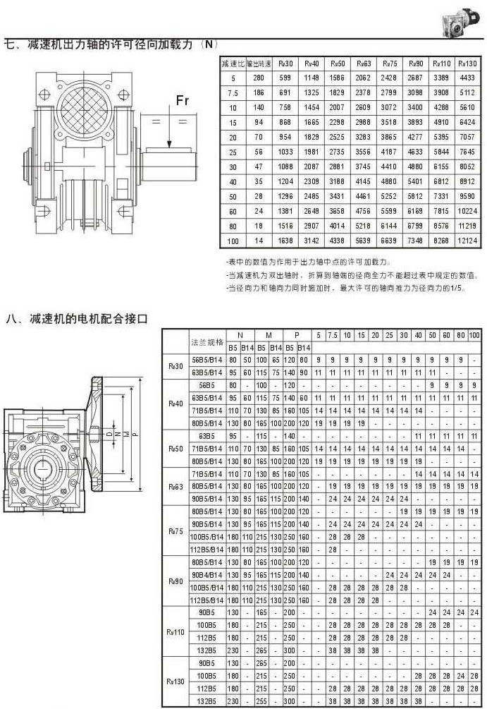 減速機(jī)出力軸的許可徑向加載力(N)減速機(jī)的電機(jī)配合接口