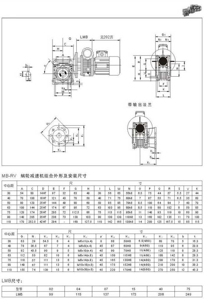 MR-RV蝸輪減速機(jī)組合外型及安裝尺寸LMB尺寸