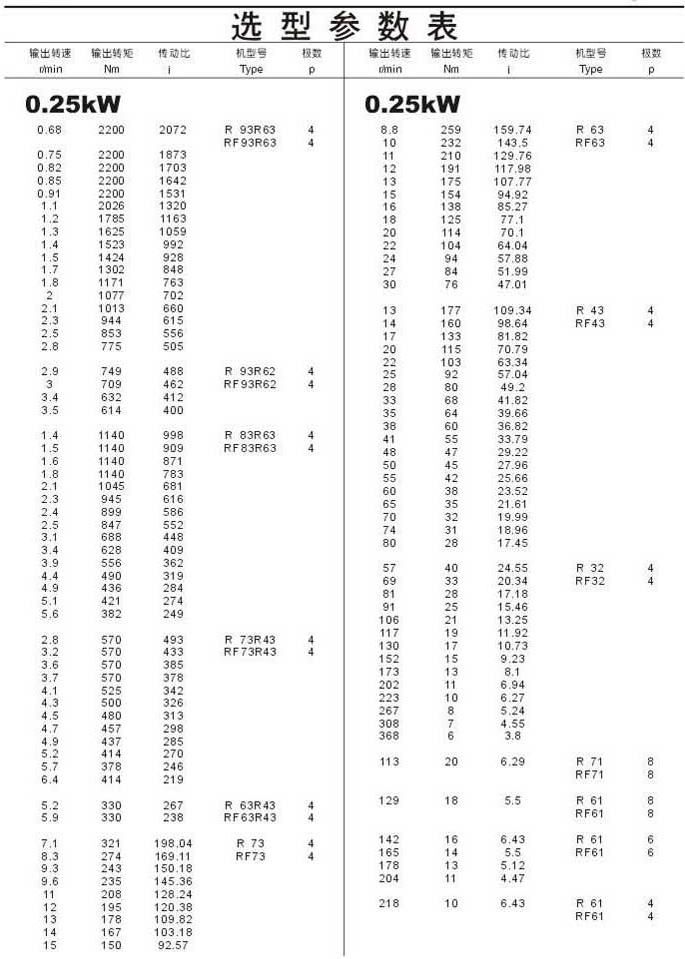 選型參數表0.25kW(續(xù))